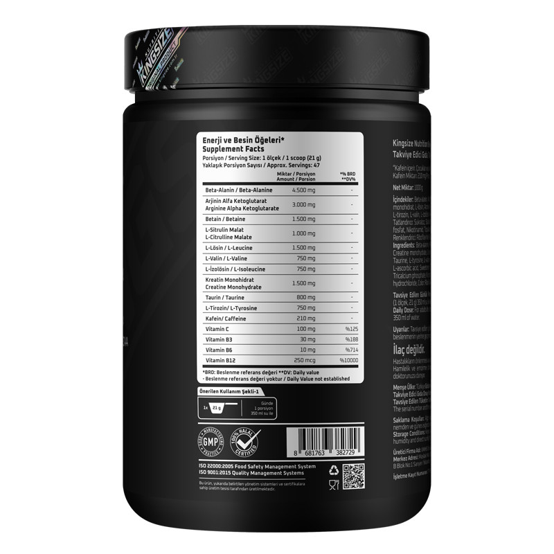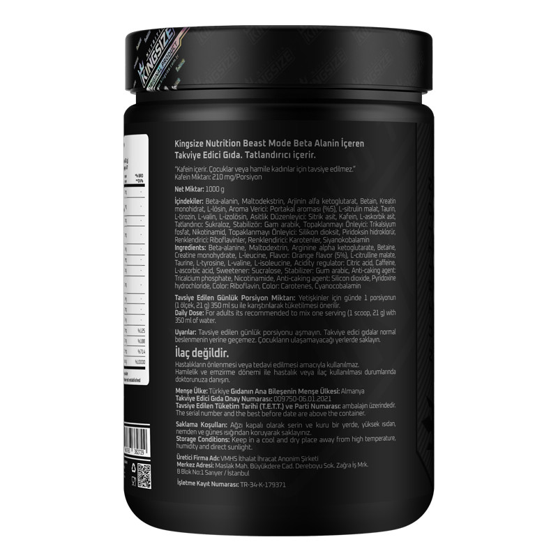 Beast Mode, which contains the most critical components for NOX production, contains high amounts of Beta-Alanine, AAKG (Arginine Alphta Ketoglutarate) and Citrulline Malate in its formula. Kingsize Beast Mode, which offers vitamin supplements as well as components that will create a pump effect; It is a product rich in fermented BCAA, Betaine and Creatine Monohydrate.