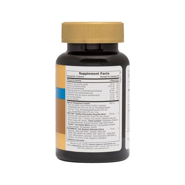 The brain is the most vital organ for the proper functioning of the body. Nature's Plus AgeLosss Brain Support provides antioxidant protection against free oxidizing radicals as it contains powerful antioxidant complexes such as First Day, Rejuvabolic and Cogni Plex. In addition, it contains B-complex vitamins, known for their essential role in mental and nervous function, as they are coenzymes of many metabolic pathways. The zinc and vitamin C it contains, enhance the antioxidant activity of the supplement, while the latter also enhances the absorption of iron.