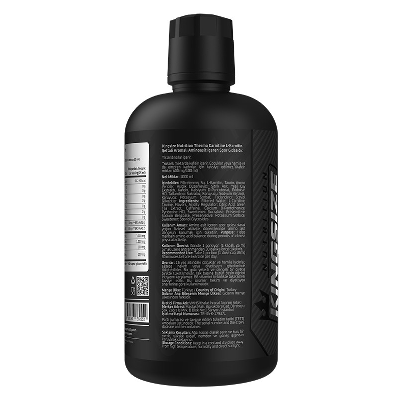 Containing high amounts of L-Carnitine, Kingsize Thermo Carnitine has a formula enriched with Caffeine and Green Tea supplements. Caffeine and Green tea, which have a high-level thermogenic effect when used together, play an active role in regulating body composition ( 1 ). Kingsize Thermo Carnitine formula is fortified with Taurine amino acid. Taurine, which provides mass increase and energy support, contributes to the improvement of the normal functions of energy metabolism ( 2). Thermo Carnitine also contains vitamins B5 and B6. Vitamins B5 and B6 are essential for the proper functioning of fats and proteins in the body. Vitamin B5 also has a thermogenic quality in the body by positively affecting energy metabolism ( 3 , 4 ).
