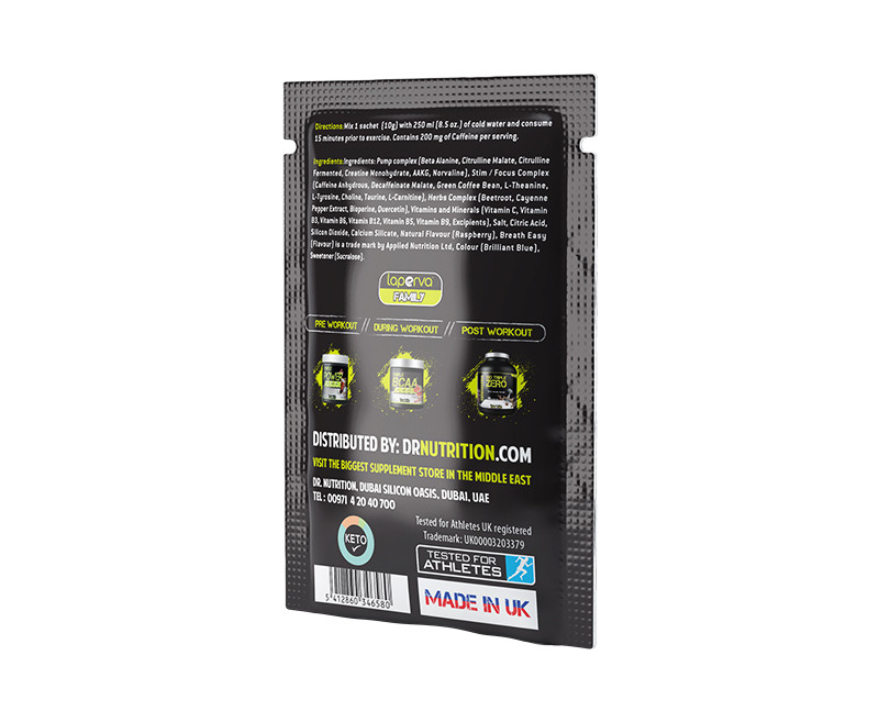 Mix Sachet with 250 ml of cold water and consume 10 minutes prior to exercise.